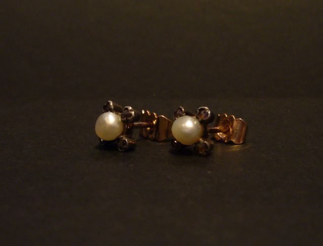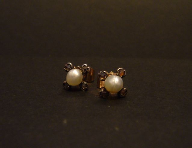 2010/6/17 Antique pierce ■ pierce 1880’s-1900’s 18k gold / pearl / rose-cut diamond ¥157,500 (¥150,000) – sold out この時代のパールは全て天然の物 天然の場合、貝の中に砂粒等の異物が入り真珠層が巻き付くため、 厚みがあり、形も同じ物がないのが特徴 さらに、パール独特な柔らかな光沢があり、また退色もしにくいと言われている その天然のパールを中心とした珍しいデザインのピアス カジュアルなシーンでもさり気なく使えるアンティークジュエリー