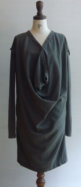 胸元のボタンを掛け違えるだけで表情が変化出来る遊びのあるデザイン