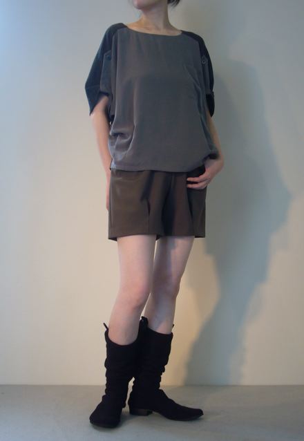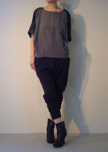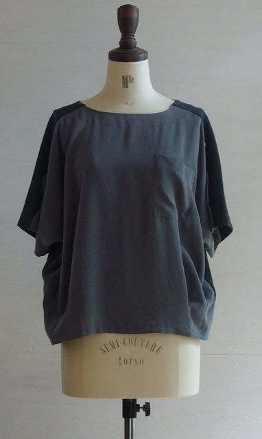 前身頃は布帛のブラウス、後身頃はウールのカットソーを共存させたデザイン