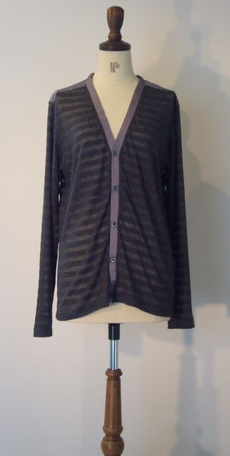 2012/3/19 RIVORA 2012 S/S Collection RIVORA 2012S/S Collection ■ cardigan tencel 95% / polyurethane 5% col. grey , ecru size M ¥25,200 (24,000) – sold out 光沢感のある別布のトリミングが目を惹くデザインカーディガン 身頃のボーダー部分は一段おきにシースルー素材になっているため、 これからの季節涼しげな雰囲気で活用しやすいデザイン とても柔らかい素材で着心地がよく、トリミングとの配色も個性的で上品な一枚