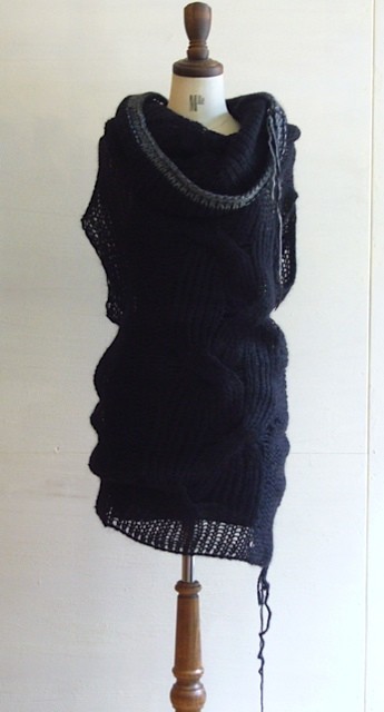 たっぷりとした分量のタートルに大胆なケーブル編みが印象的