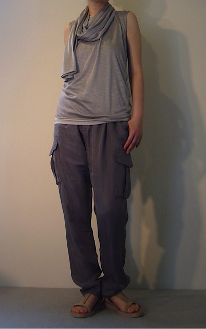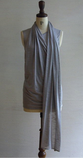 ストール部分を長めに残すとエレガントに、首に巻き付けるとカジュアルな印象に