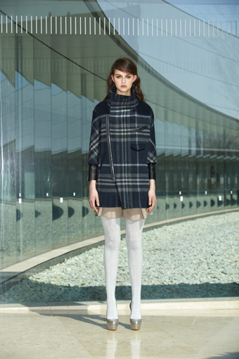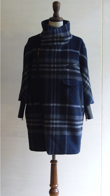 2013/9/10 near.nippon 2013-14 A/W Collection near.nippon 2013-14 A/W Collection ■ coat wool 50% , mohair 30% , nylon 20% col. navy size F ¥71,400 (68,000) – sold out ビックチェックのプリントが目を惹くコクーンコート 毛足の長いシャギーと丸みのあるシルエットによる柔らかいイメージを、 袖口にレイヤードされたホースレザーが引き締めている 冬の寒さも楽しい気分にしてくれそうなデザインコート