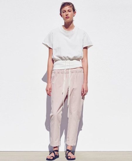 2017/4/25 bassike 2017S/S Collection bassike 2017S/S Collection ◾︎ loopback fleece boxy sweat cotton 100% col. white size 00 ¥26,000 + tax – sold out 半袖のスウェットトップ ウエスト部分の太いリブがどこか懐かしいデザイン ブラウジングの分量により シルエットと見た目の印象が変わるので、 ボトムとのバランスや気分に合わせて 変化を楽しみたい ◾︎ pants【bassike】 ¥34,000 + tax