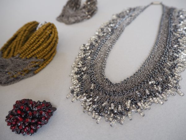 ヴィンテージのパーツやガラスビーズなどを使用し、